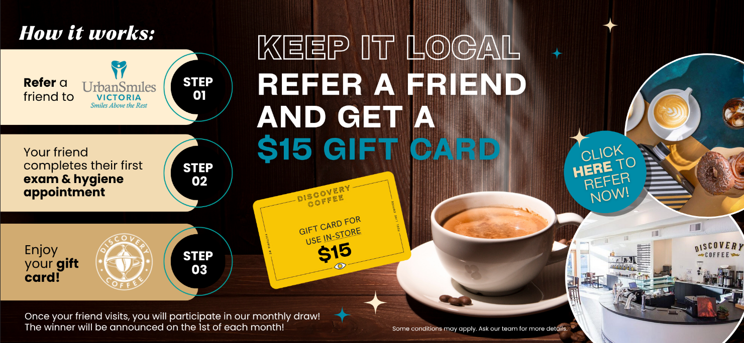 Urban Smiles Victoria is conveniently located in the Downtown area, right by the intersection of Blanshard and Borughton St, near the Downtown YMCA. There are ample parking options available at our practice. We also offer ample clinic hours that extend into the evening, to help you with your schedule. Contact us today and our staff will help you find the next available appointment that suits your schedule.